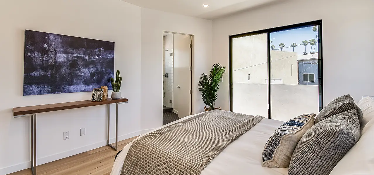 The bathrooms within the “Venice Chic Renovation” are true private sanctuaries, each designed with a unique yet cohesive aesthetic.