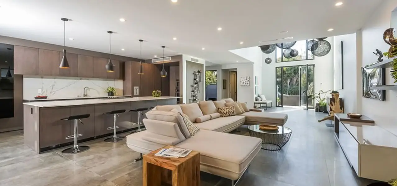 The “Venice Dramatic Beach Renovation” project embodies a bold and sophisticated transformation, creating a residence that is both a modern architectural statement and a serene coastal retreat. This comprehensive general home renovation masterfully blends industrial-chic elements with luxurious finishes, resulting in an open, light-filled, and highly dramatic living experience perfectly suited for its beachside locale.
